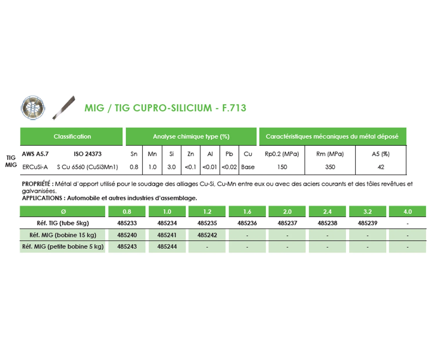 FIL MIG CUPRO-SILICIUM - F.713 Ø 1,2