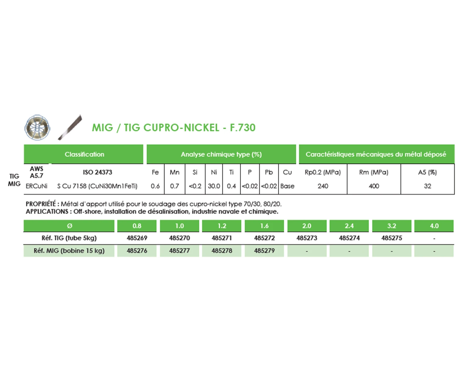 MÉTAL DAPPORT TIG BRONZE-MANGANESE - F.730 Ø 1,6
