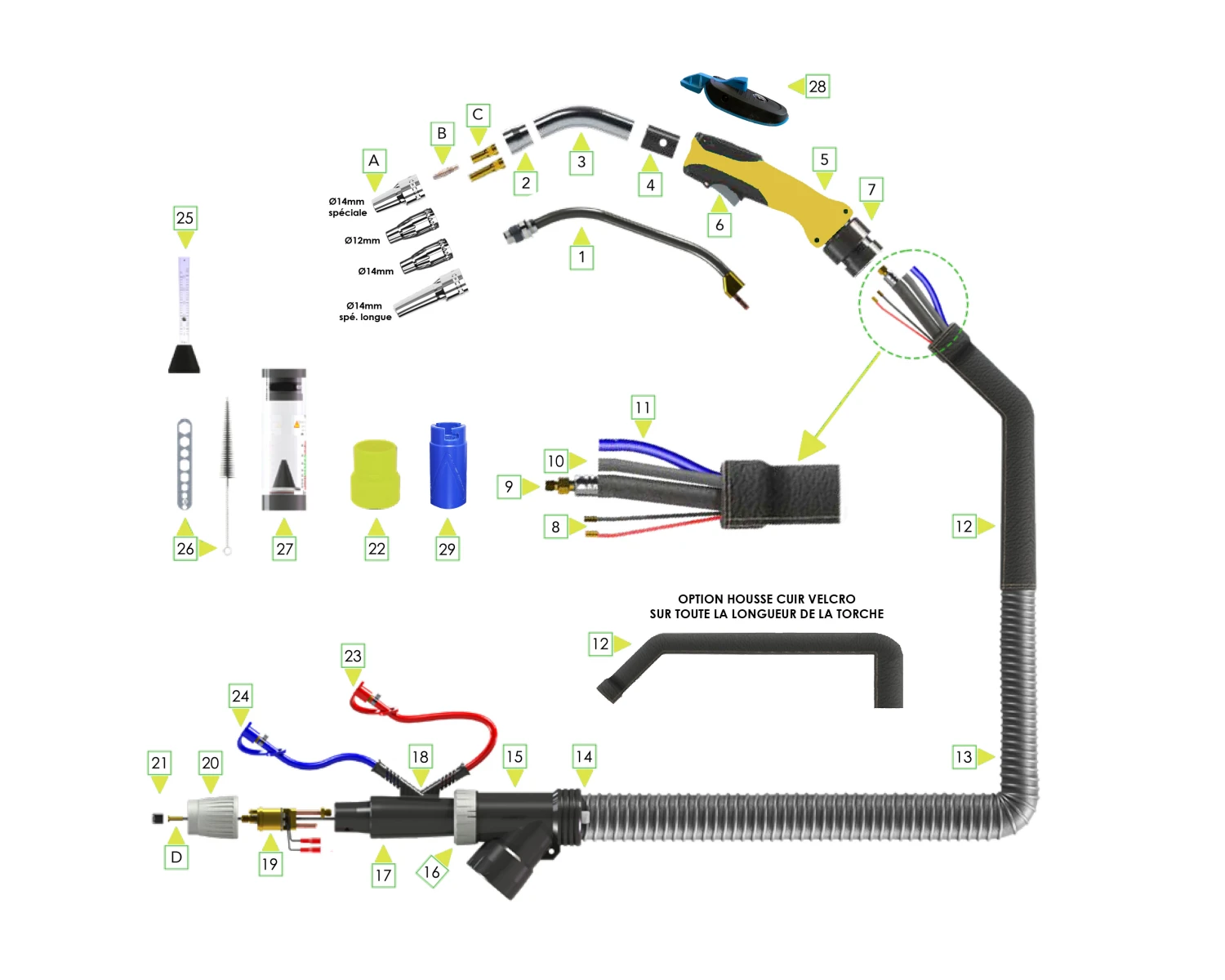 • Particulièrement adaptée au soudage nécessitant de changer souvent de position