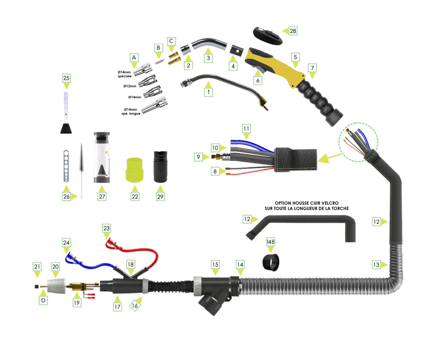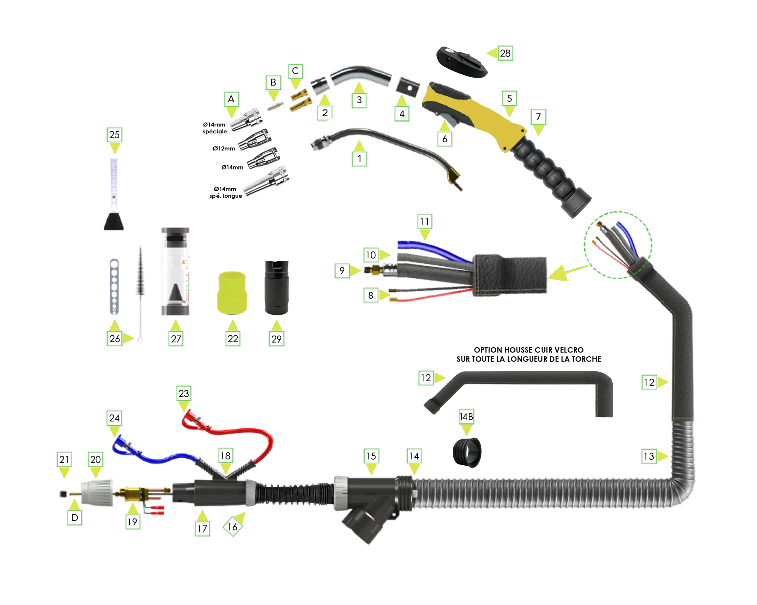 Torche aspirante MIG/MAG 320A 3M 30° EAU flex